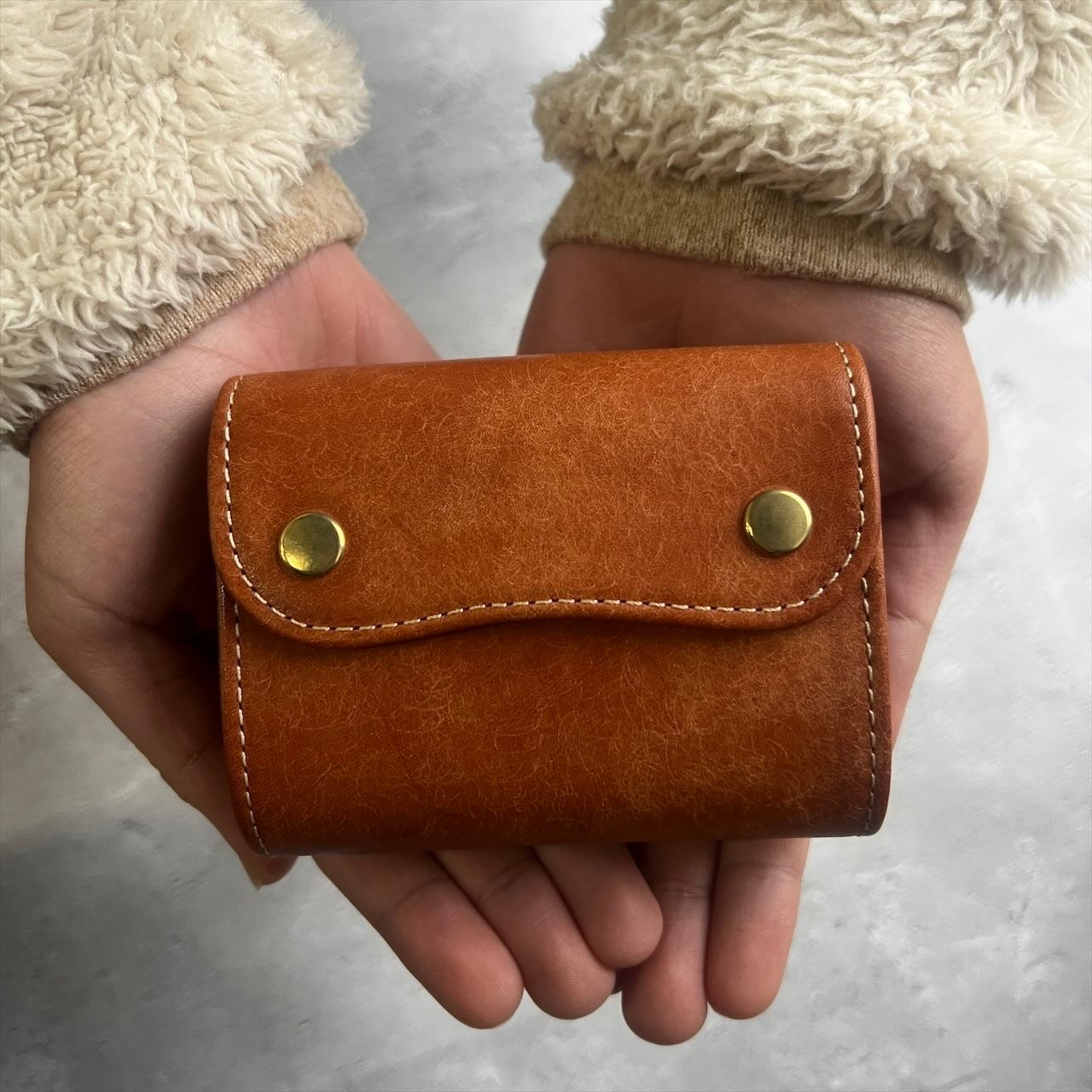 手のひらに収まるサイズ感でありながら、小さいのに大容量という特徴の三つ折り財布。