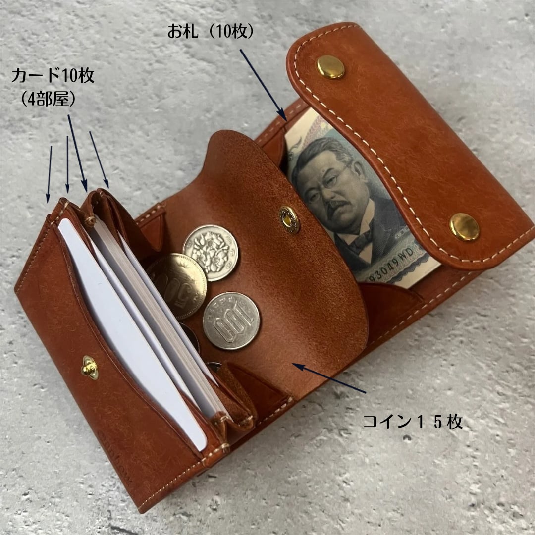 ・カード10〜12枚(カードポケットが4部屋で仕分けできる)