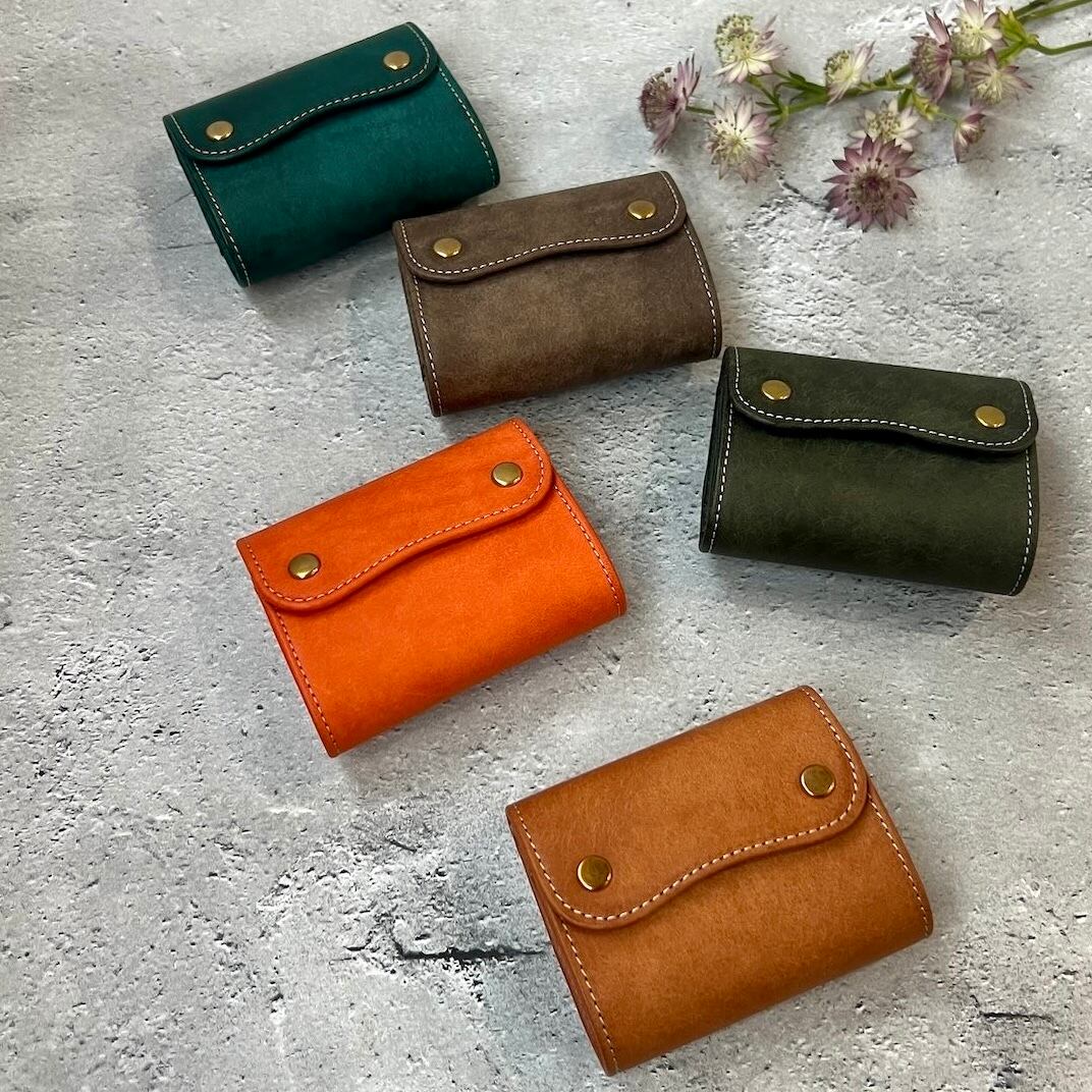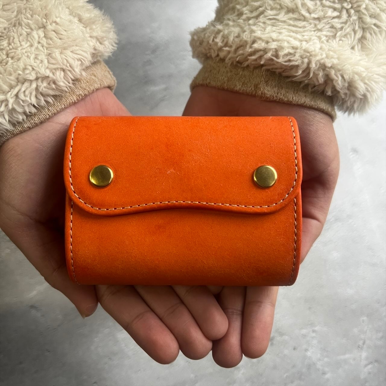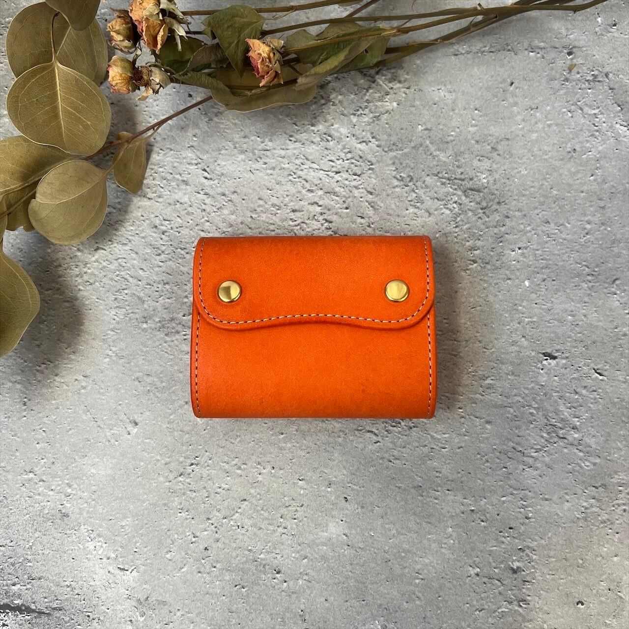 コロンと可愛い三つ折り財布【オレンジ】(送料無料)ミニ財布 イタリアンレザー 財布 メンズ レディース