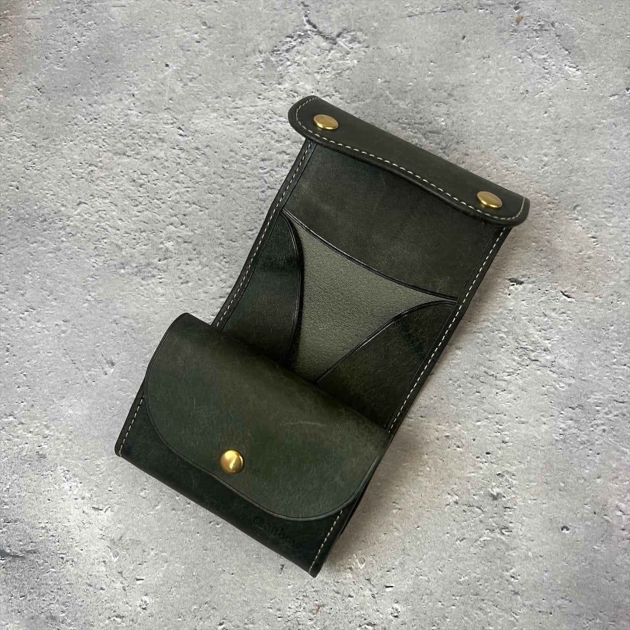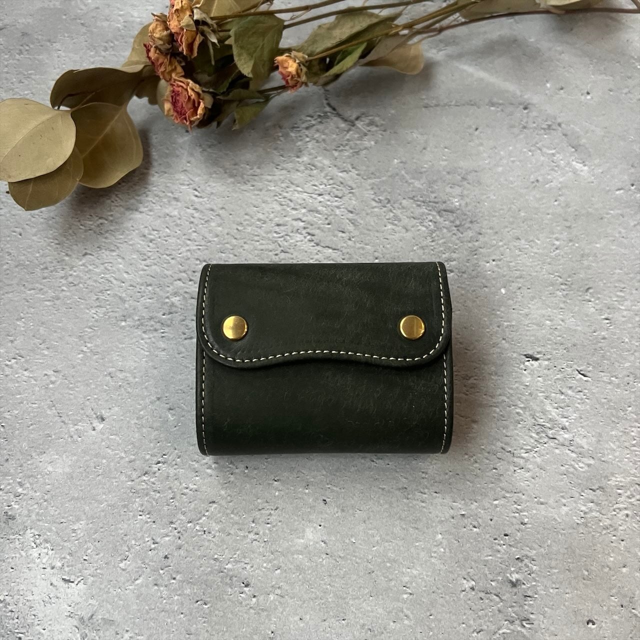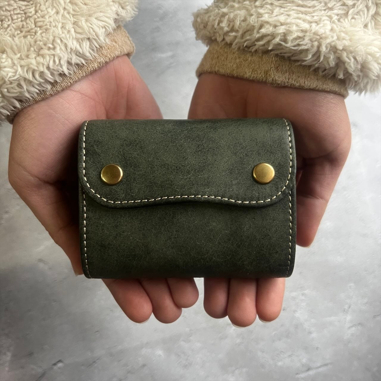 コロンと可愛い三つ折り財布【グリーン】(送料無料)ミニ財布 イタリアンレザー 財布 メンズ レディース