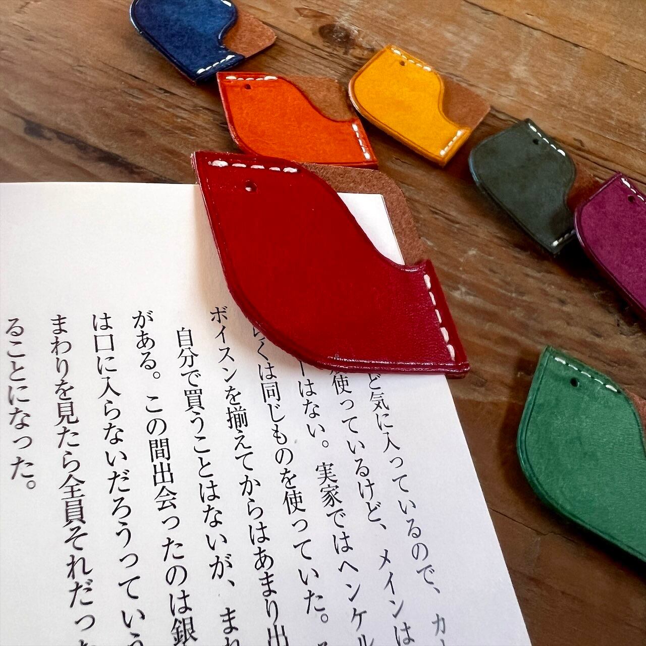 ページの角を挟むタイプなので、しっかりと開いたページを保持しつつ、見た目にも楽しいデザインです。(紙が薄い場合は2〜3枚一緒に挟むと外れにくいです。)