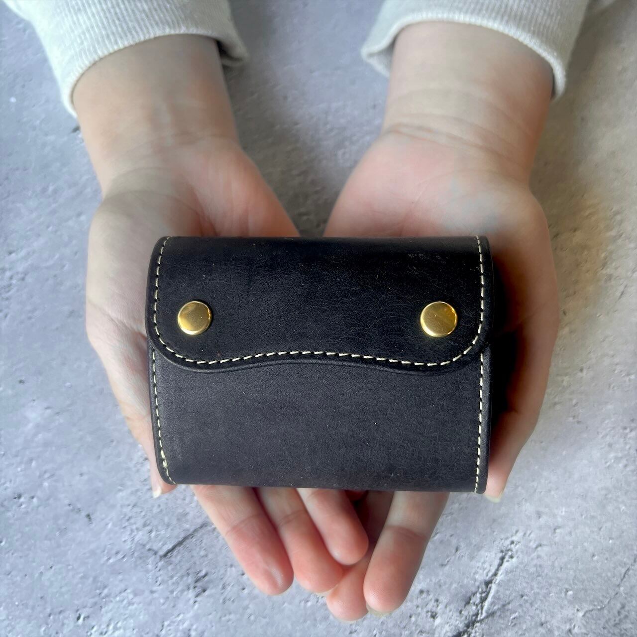 コロンと可愛い三つ折り財布【ブラック】(送料無料)ミニ財布 イタリアンレザー 財布 メンズ レディース