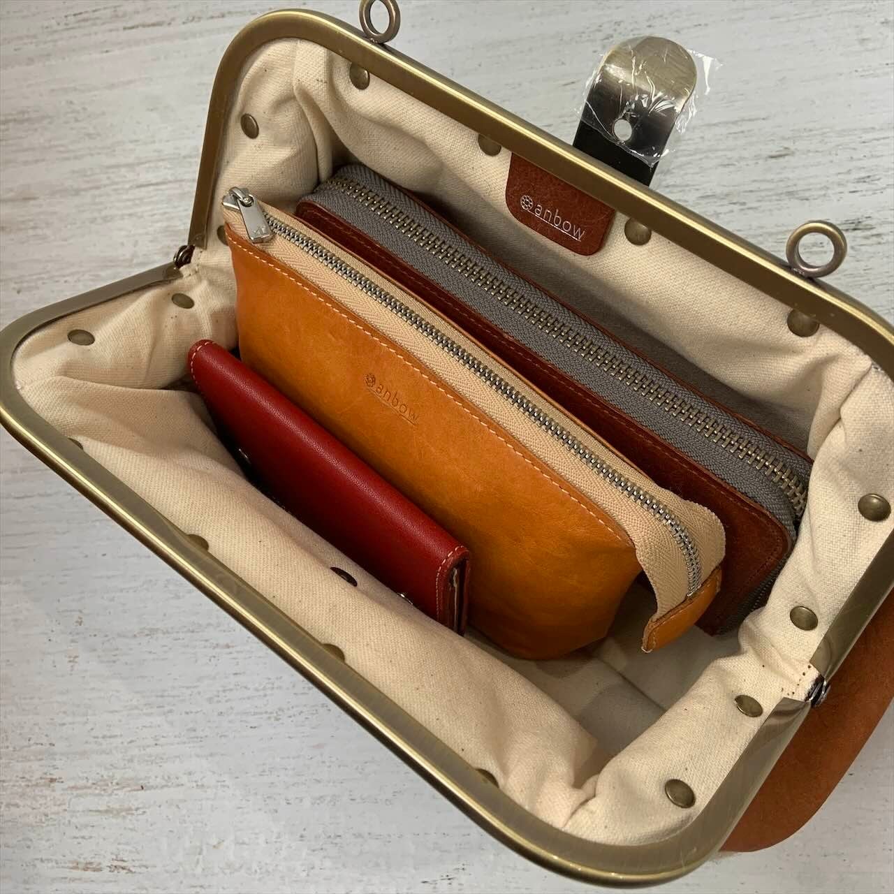 カシメ留め口金を使った、がま口ショルダーバッグになります。